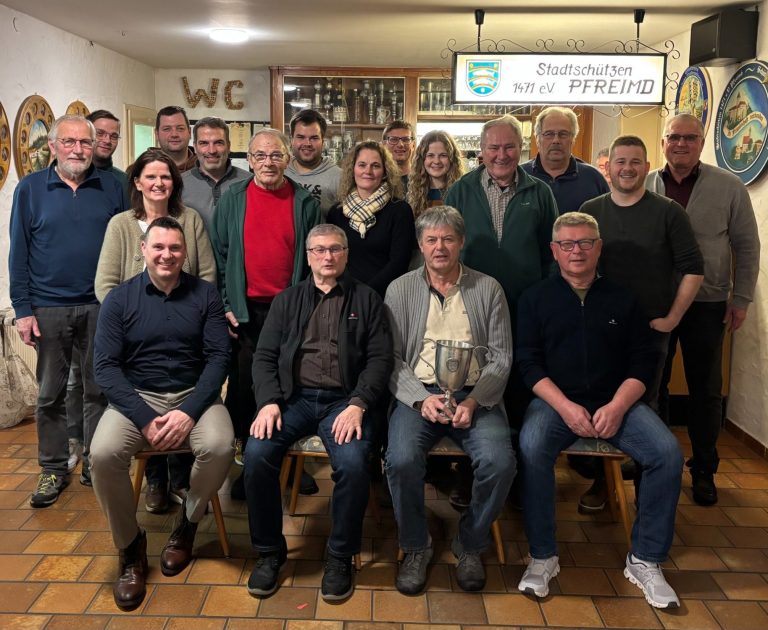 Zur Siegerehrung der Stadtmeisterschaft und des Silvesterschießens 2025 begrüßten die Stadtschützen 1471 e.V. Pfreimd zahlreiche Gäste im Schützenheim. Mit 66 Mannschaften verzeichnete die Stadtmeisterschaft einen neuen Rekord. Den Wanderpokal sicherte sich die Mannschaft Eisstock 5-Wendehammer, Stadtmeister in der Einzelwertung wurde Christian Kalb. Auch das Silvesterschießen erfreute sich großer Beteiligung in Freihand- und Auflageklasse.